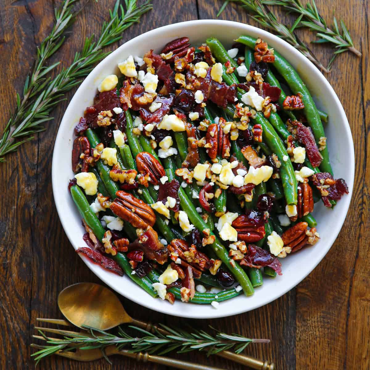 Green Bean Salad with Bacon, Pecans, Cranberries, and Feta