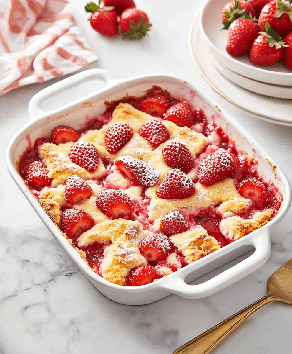 I still remember the first time I made strawberry cobbler from scratch. It was one of those lazy Sunday afternoons when I had a pound of fresh strawberries sitting in the fridge, begging to be used. I’d planned to make a simple fruit salad, but then I spotted my grandmother’s old baking dish tucked away in the cabinet. That dish had seen its fair share of cobblers, crisps, and crumbles over the years, so I decided to put it to good use. I didn’t follow a recipe at the time—just threw together some flour, sugar, and butter, hoping for the best. To my surprise, the result was a perfectly golden cobbler with jammy strawberries peeking through the crust. Since then, I’ve refined the process, and now I’m sharing my absolute favorite version with you.